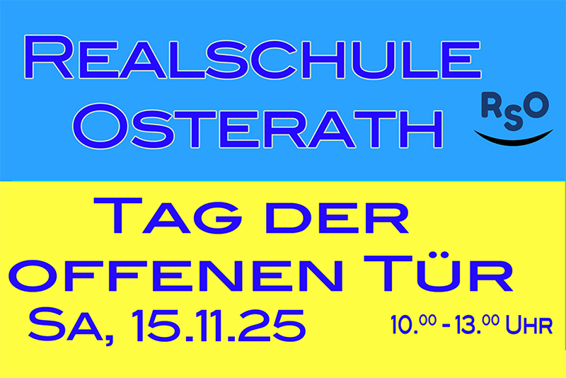 Der diesjährige Tag der offenen Tür der Realschule Osterath findet am Samstag, den 15.11.2025, in der Zeit von 10.00 - 13.00 Uhr statt. Am Tag der offenen Tür wird den Schüler:innen der jetzigen 4. Klassen und deren Eltern einiges geboten: