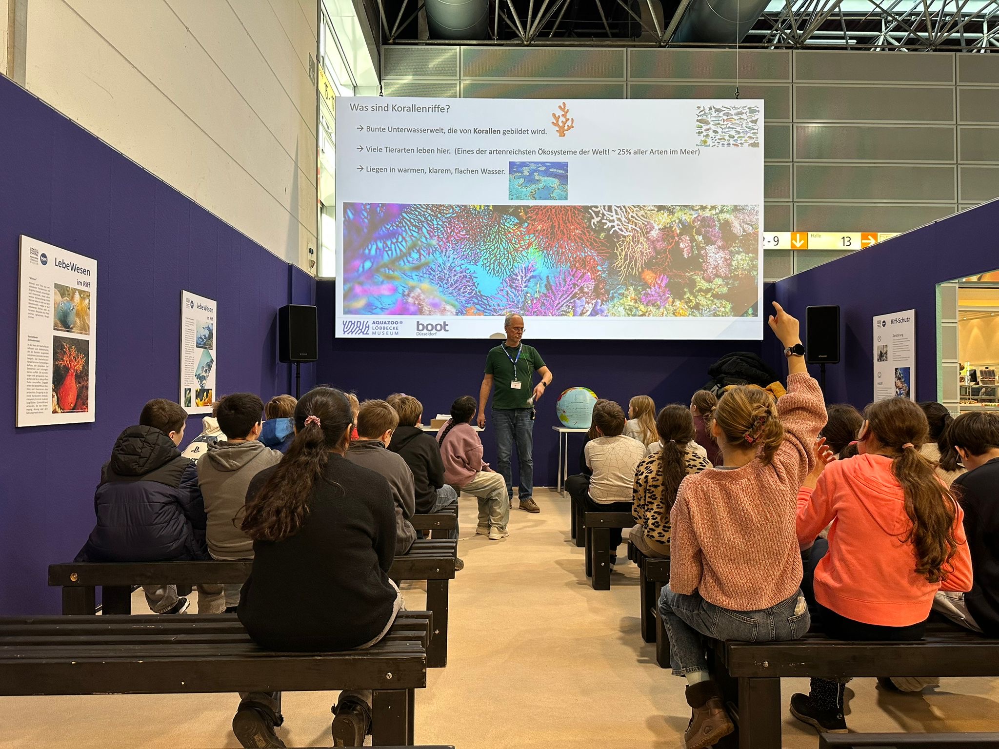 Die Schüler:innen der Klasse 5b durften am Montag, den 19.01.2026, einen spannenden Lerntag auf der Messe Boot erleben. Sie tauchten ein in die maritime Welt und lernten den Unterschied zwischen Salz- und Süßwasser kennen. Außerdem wurden mit Mikroskopen verschiedene getrocknete Tiere inspiziert. Nach dem offiziellen Programm erkundeten die Schüler:innen natürlich auch noch die verschiedenen Hallen, in denen die Boote ausgestellt werden. Was ein toller Tag.