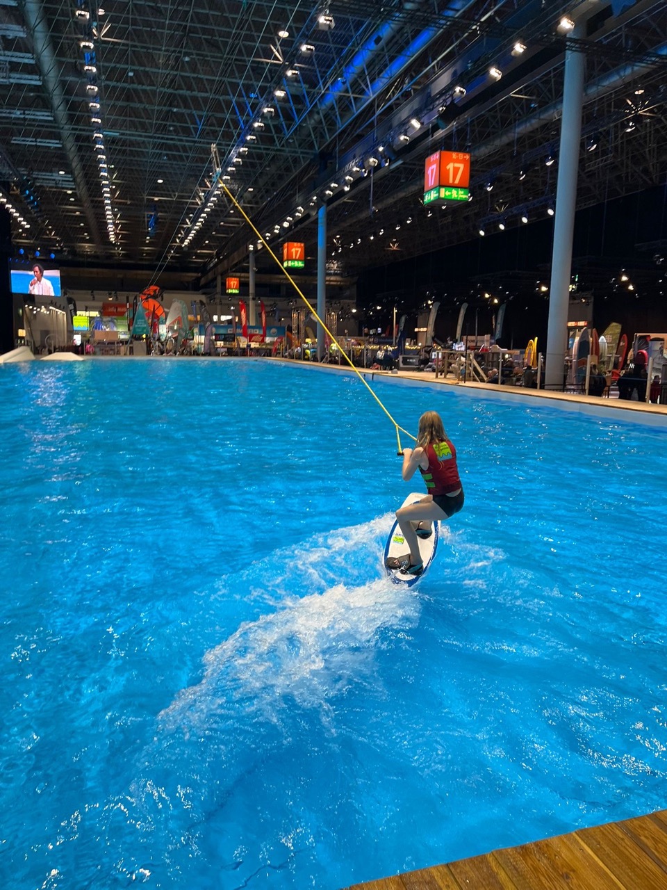 Auch die Klassen 7a und 7b besuchten am 23.01.2026 die boot Düsseldorf. Diesmal hieß es für die Schüler:innen „ab auf die Bretter“ in der Surf Academy in Halle 17. Wakeboarden und Skimboarden standen auf dem Programm und die Kinder durften sich in beiden Wassersportarten ausprobieren und ihr Können unter Beweis stellen.